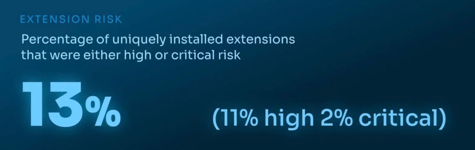 Dữ liệu theo dõi của Keep Aware trong năm 2025 cho thấy 13% số tiện ích mở rộng được cài đặt duy nhất bị xếp vào nhóm rủi ro cao hoặc nghiêm trọng. Điều này cho thấy các extension nguy hiểm không phải là trường hợp hiếm, mà đang xuất hiện với tần suất đáng kể ngay trong môi trường doanh nghiệp.